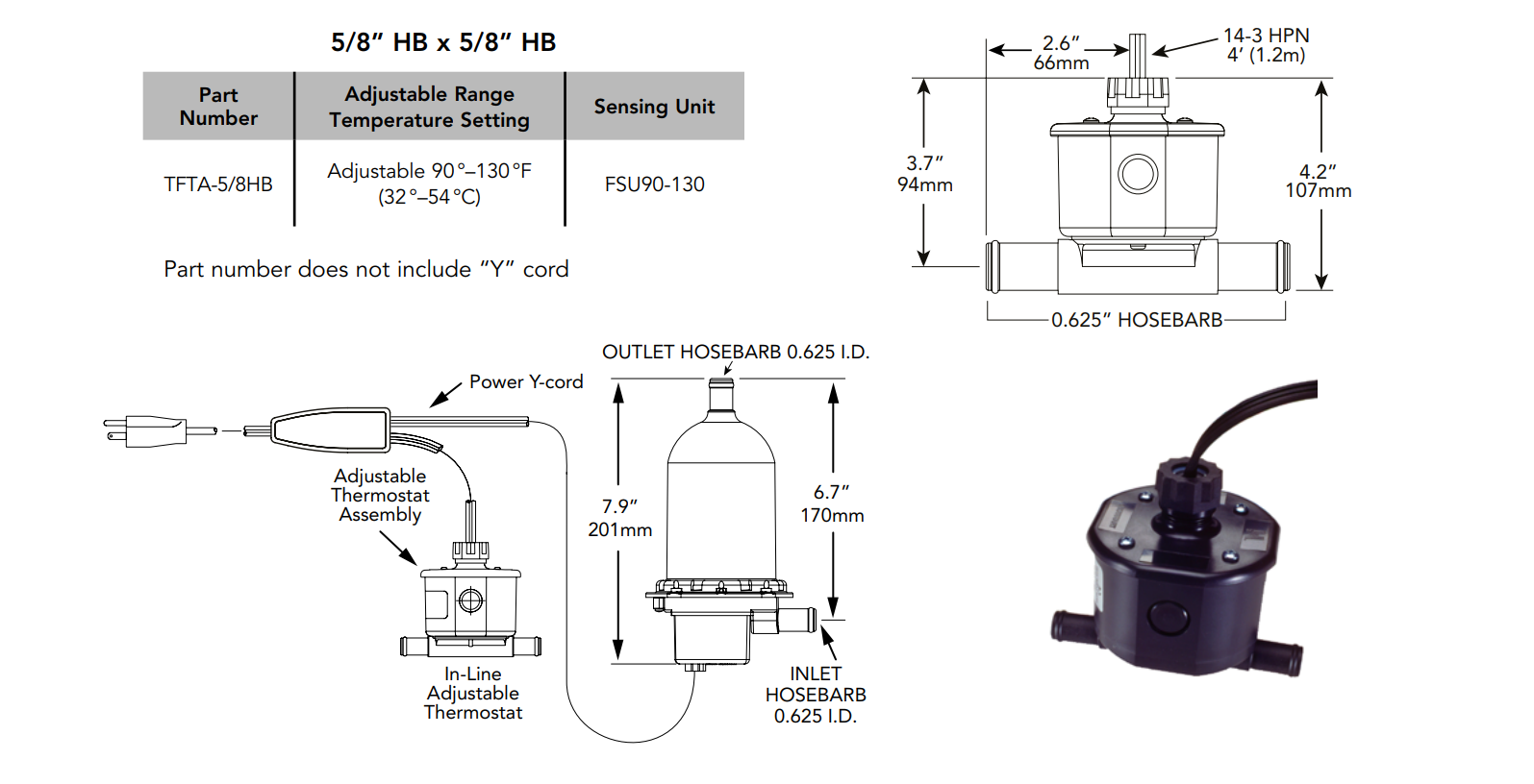 The Hotstart FSU90-130 flanged sensing unit activates between ADJ 90-130F and helps regulate coolant temperature in engine heater systems.